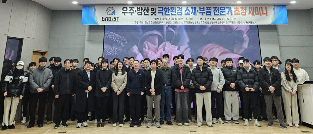 We attended the “Expert Invitation Seminar on Space, Defense, and Materials and Components for Extreme Environments” held at Gyeongsang National University. Our research group is currently participating in the GADIST space and defense project.